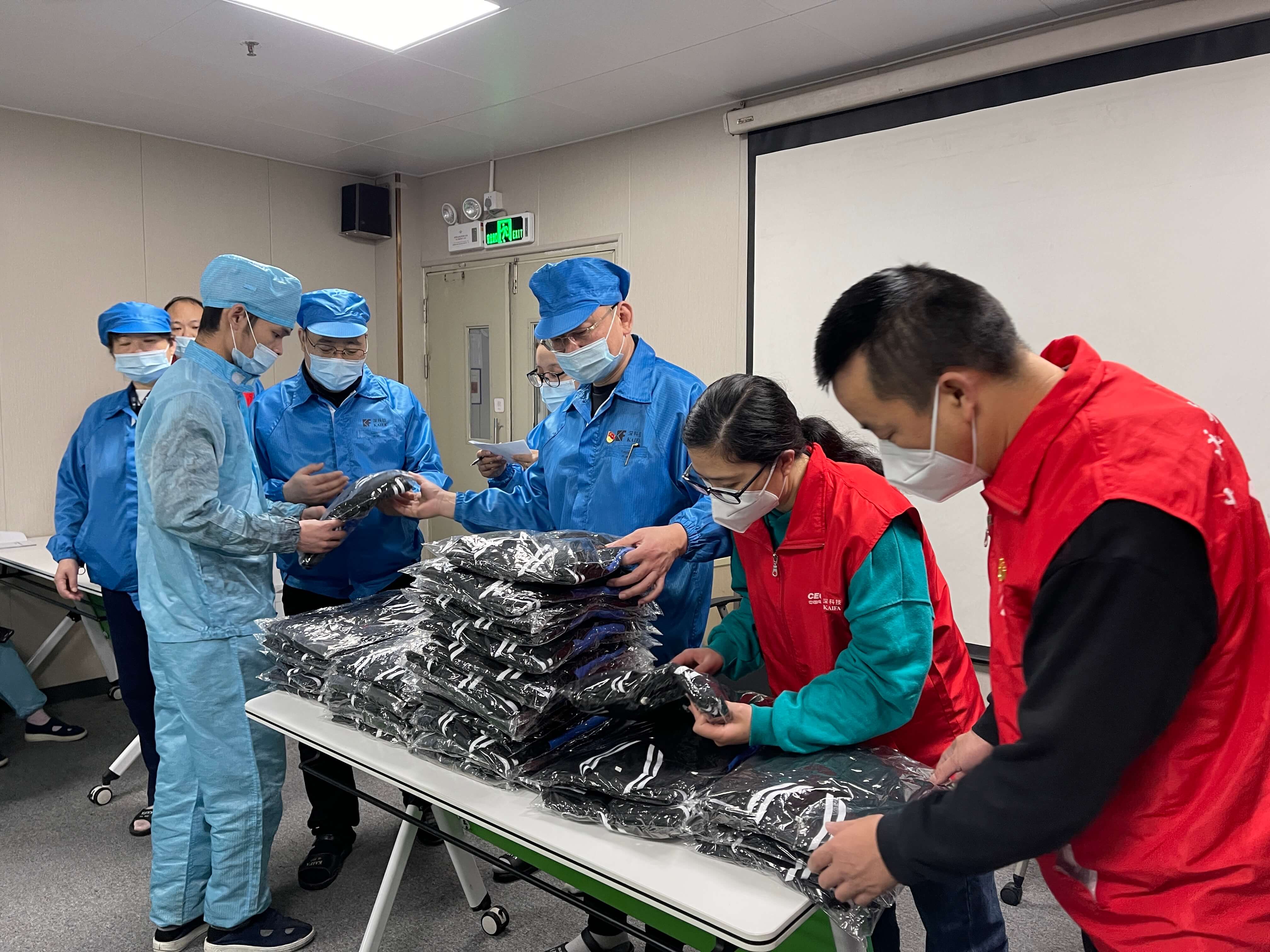 既送清凉 神马电影免费观看,又送温暖,进入封控管理的第4天,深圳石岩的天气由温热骤然到冰凉,前几日发出的“送清凉”T恤43件已不能御寒,公司工会连夜整备“送温暖”长袖会员服及厚装马甲57件,发放给仅穿短袖的产线员工,工业园管理处,政府派驻人员。