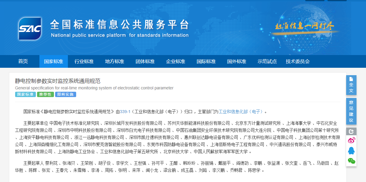近期,由工业和信息化部立项,中国电子技术标准化研究院归口管理的国家标准GB/T 44787—2024《静电控制参数实时监控系统通用规范》正式发布,将于2025年5月1日起实施,作为我国首个自主制定的静电控制参数实时监控领域国家标准,该标准填补了国内外技术标准空白 神马电影高清播放,指引相关产业公平,科学,良性发展。